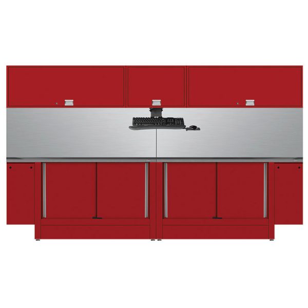 Stationary, Left Or Right Overhangs To Attach Lift Power Units, (2) 60”W Stainless Steel Tops, (2) 60”W Stainless Steel Utility Chase Panels, (4) Locking Sliding Doors, (2) Lower Kick Plates, (1) 120”W Shureguard Rubber Mat, (2) 48”W Upper Storage Cabinets, (1) Monitor Cabinet With Door & Keyboard / Mousepad Stand, (2) LED Task Lights, Set Of (4) Shure Uprights, Leg Levelers, 120”W x 24”D x 75”H