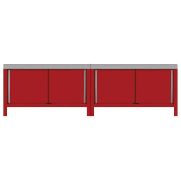 Stainless Steel Top, Painted Steel Backstop, No Bench Top Overhang, (4) Sliding Doors, 120”W x 24”D x 34”H