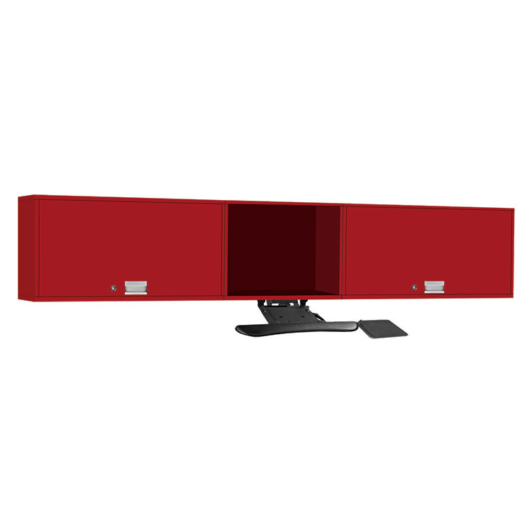 (2) 36”W Upper Storage Cabinets With Locking Flip-Up Gas Shock Doors, (1) Open Monitor Cabinet, Articulating Keyboard Mechanism, 96”W x 15”D x 18 9/16”H