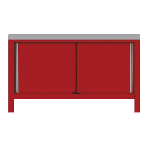 Painted Steel Top, Painted Steel Backstop, No Bench Top Overhang, (2) Sliding Doors, 60”W x 24”D x 34”H
