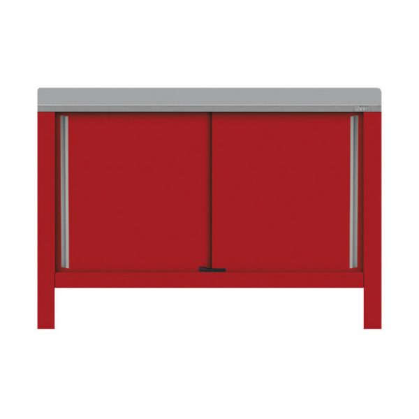 Stainless Steel Top, Painted Steel Backstop, No Bench Top Overhang, (2) Sliding Doors, 48”W x 24”D x 34”H