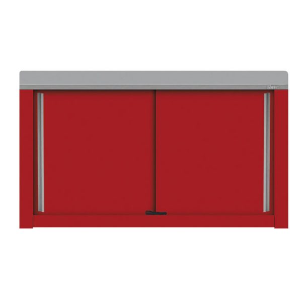 Stainless Steel Top, Painted Steel Backstop, No Bench Top Overhang, (2) Sliding Doors, 48”W x 24”D x 27 1/2”H