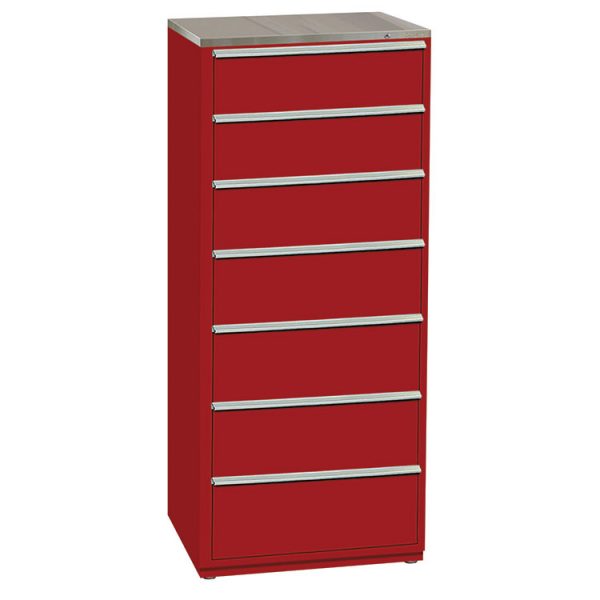 Stationary, Single Bank, (7) Full-Extension 400lb. Capacity Locking Drawers, Drawer Liners, Leg Levelers, Stainless Steel Over Wood Top Sold Separately, 29 1/4”W x 27 3/4”D x 60-15/16”H